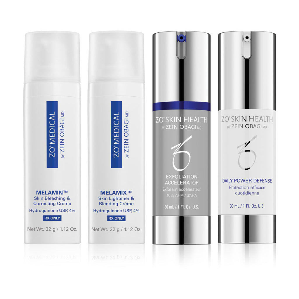 An all-encompassing system formulated to help treat hyperpigmentation, severe texture damage, sun damage and general skin health restoration.
